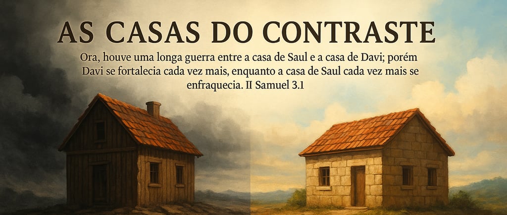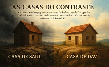 Introdução: As escrituras sagradas nos fala de muitos contrastes: A árvore da vida e a árvore da morte (do conhecimento do bem e do mal); luz e trevas; benção e maldição; o caminho alto e o baixo; a casa construída na areia e a casa construída na rocha; o bom pastor e o mau pastor; a porta estreita e a porta larga; a carne e o espírito; etc. No entanto existe um contraste que considero um dos maiores da bíblia que é a casa do Rei Saul e a casa do Rei Davi. Ao estudarmos sobre estas duas casas, descobrimos que elas estão hoje presentes na Igreja do Senhor Jesus. O que nos propomos neste presente estudo é ajudá-lo a fazer em sua vida.
